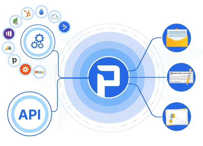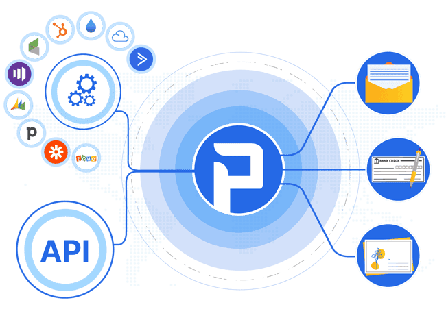 - Add capabilities to your existing CRM and enable sending letters, cheques, or postcards.