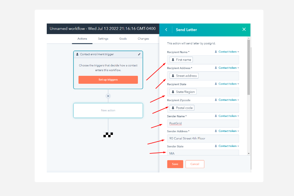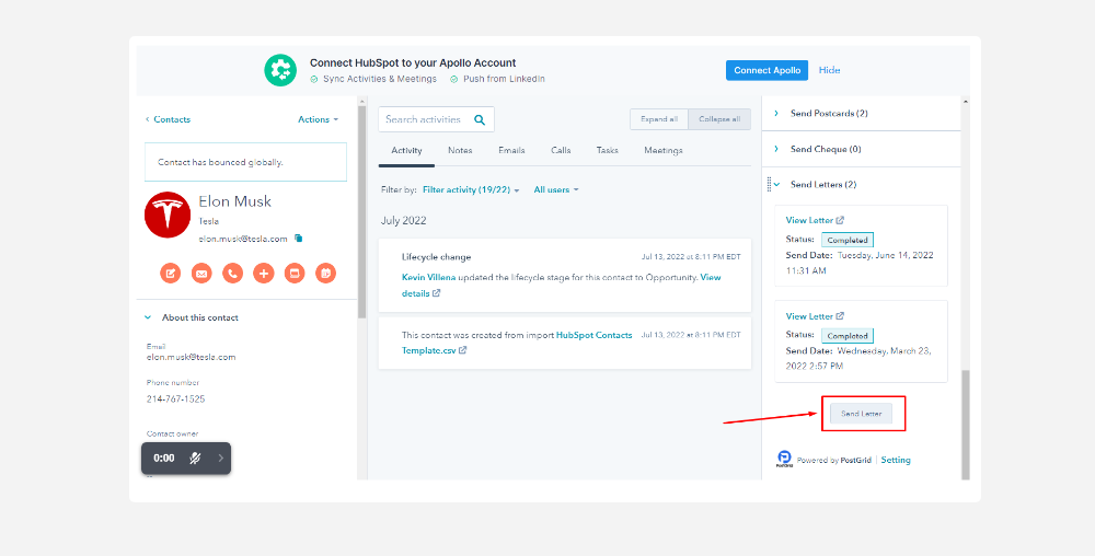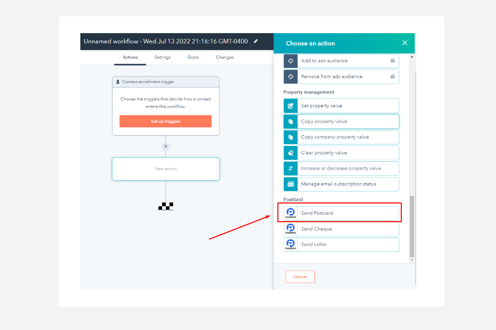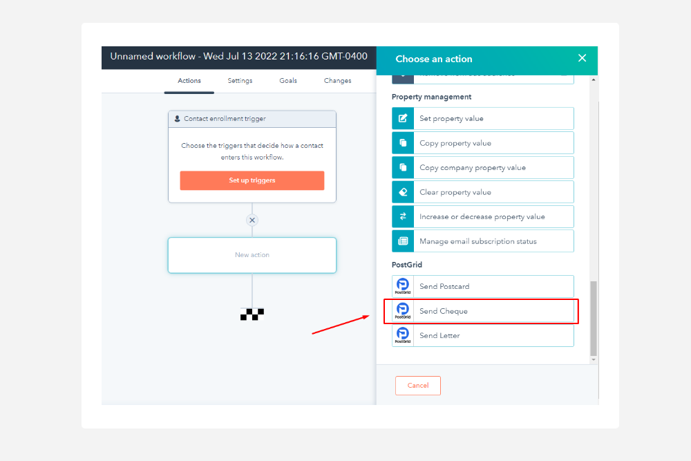 PostGrid’s native HubSpot Integration allows to send letters, postcards and cheques/checks to your customer list one at a time on demand, through workflow automation, or launch a bulk mailing campaign. In this guide, we will walk you through how to perform each step.