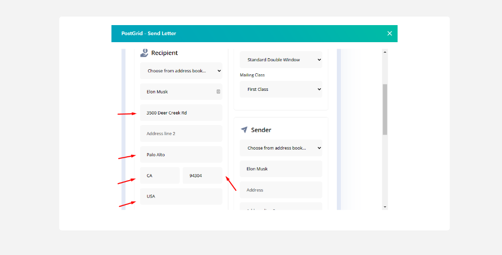 Sender Details: Input the Sender Details. You will have to put Name, Address, City, State, Zip Code, Country.