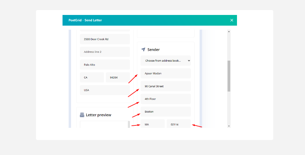 Send Letter: Click the “Send Letter” button to send a letter now.