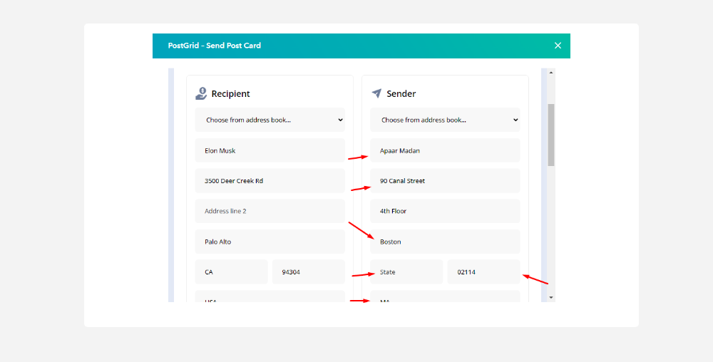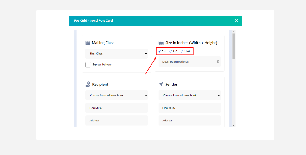 Send Postcard: Click the “Send Postcard” button to send a postcard now.