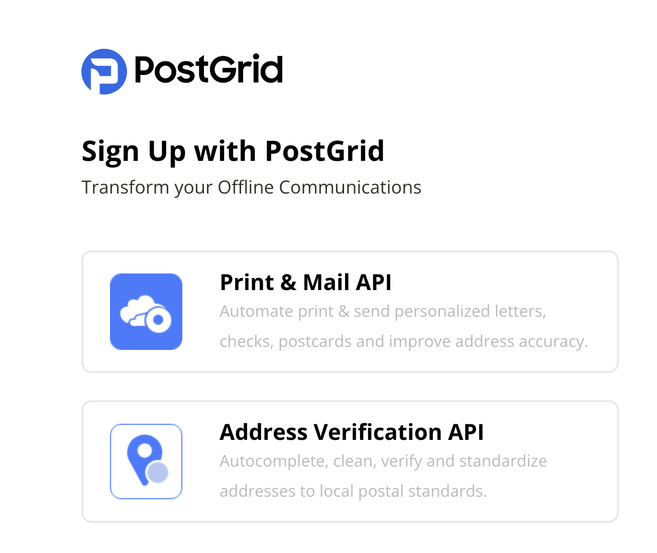 Start transforming and automating your offline communications with PostGrid
